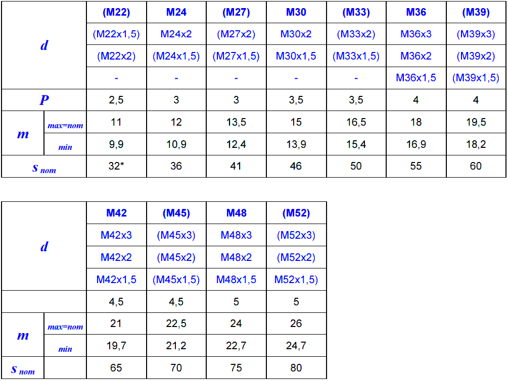 - m - wysokość nakrętki