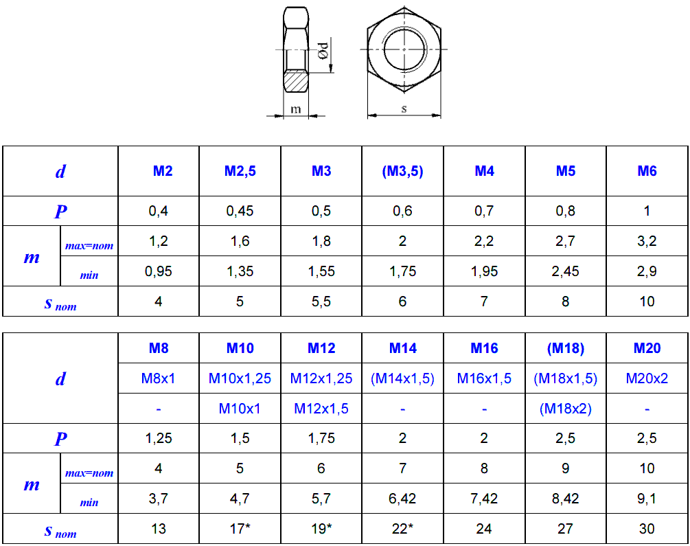 - m - wysokość nakrętki