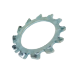 Podkładki okrągłe ząbkowana zewnętrznie spełniające normę DIN 6797 forma A, ze stali sprężynowej, w ocynku galwanicznym białym.