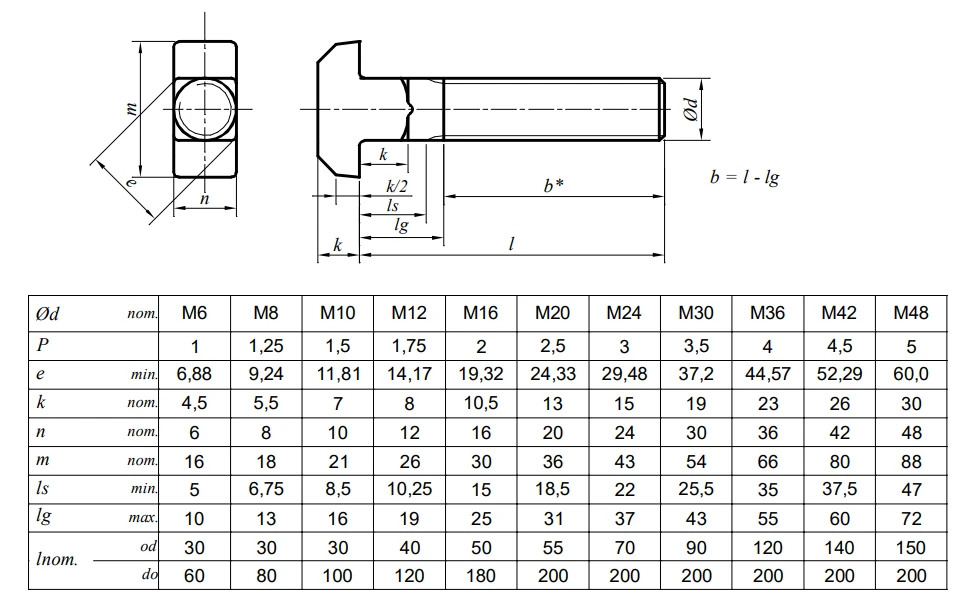 Śruby z łbem młoteczkowym z podsadzeniem kwadratowym DIN 186 B przeznaczone do budowy maszyn oraz blokowania połączeń profilowych specjalnego przeznacznie.